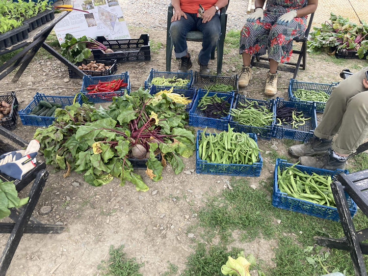 The team took part in picking raspberries, green beans, Haricots Verts, Romano Beans and string beans, weeding and raking up the soil to prepare for cultivating and spreading hay bales for a new produce area.