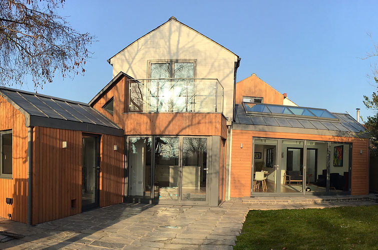 To the front, the original appearance of the property, visible from a primary route through the village, is retained. To the rear, the extensions provide a material contrast to the existing house with stained larch cladding, forming a modern contrast and relief to the rear façade.